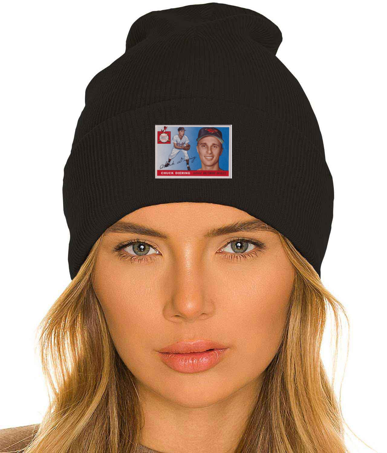 1955 Baltimore Orioles Chuck Diering Outfield Photo Baseball Logo Customized Design on 12″ Cuffed Beanie