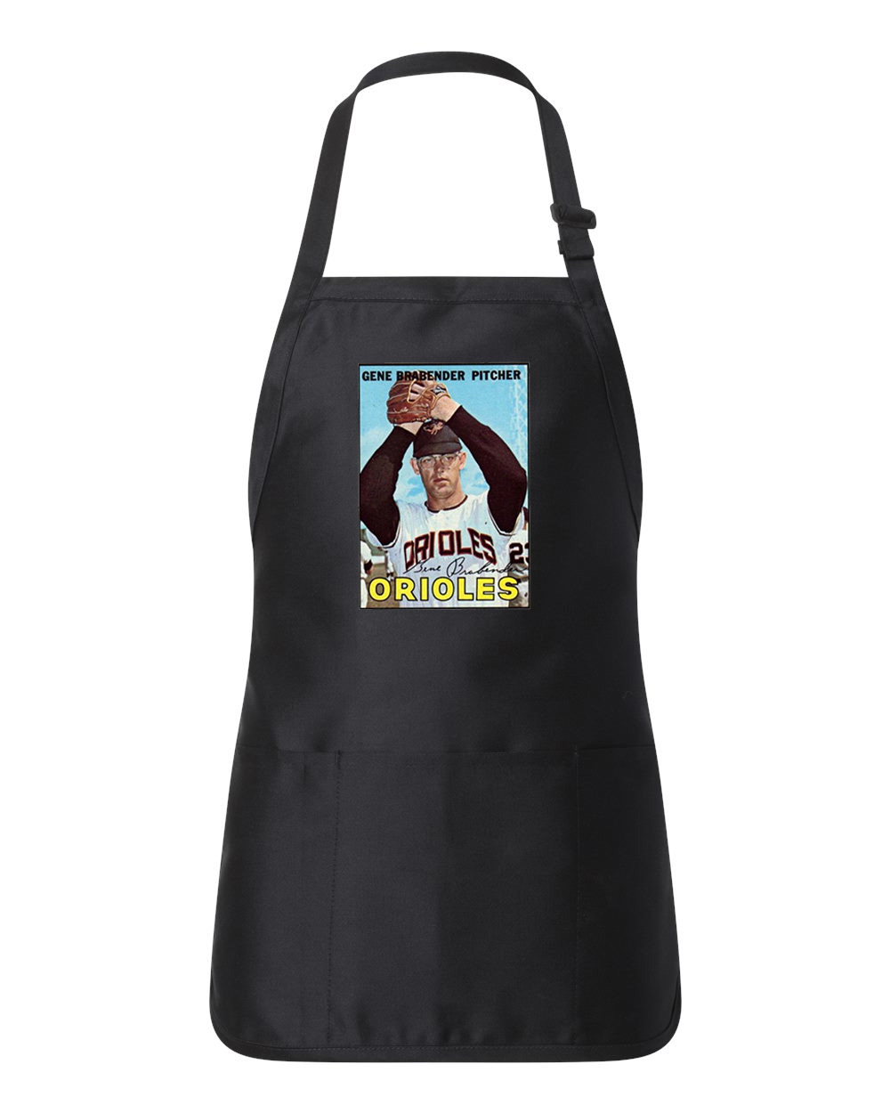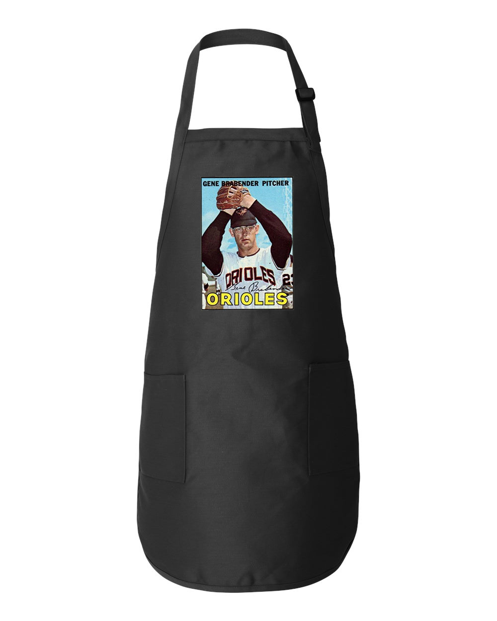 1965 Baltimore Orioles Gene Brabender Pitcher Photo Baseball Logo Symbol Emblem Customized Design on Full-Length Apron with Pockets