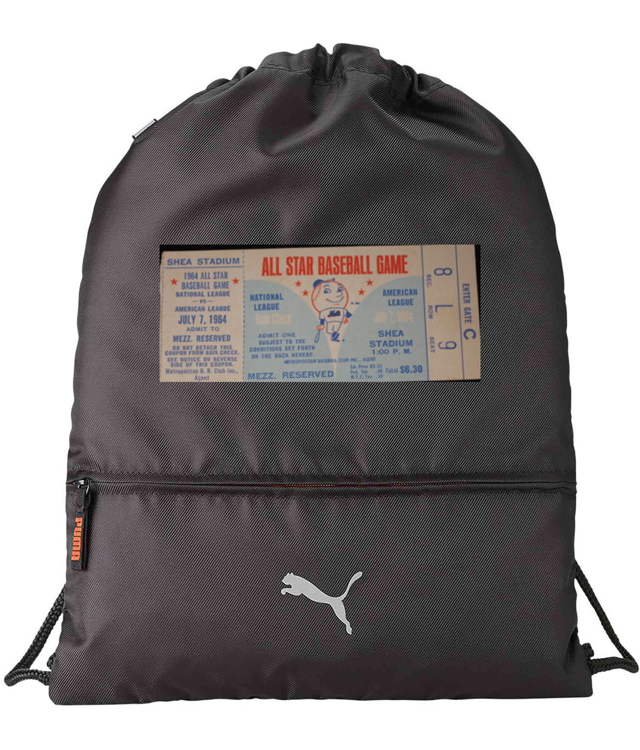 1964 MLB All-Star Game Ticket Stub Baseball Logo Symbol Emblem Customized Design on Lightweight Drawstring Backpack Bag