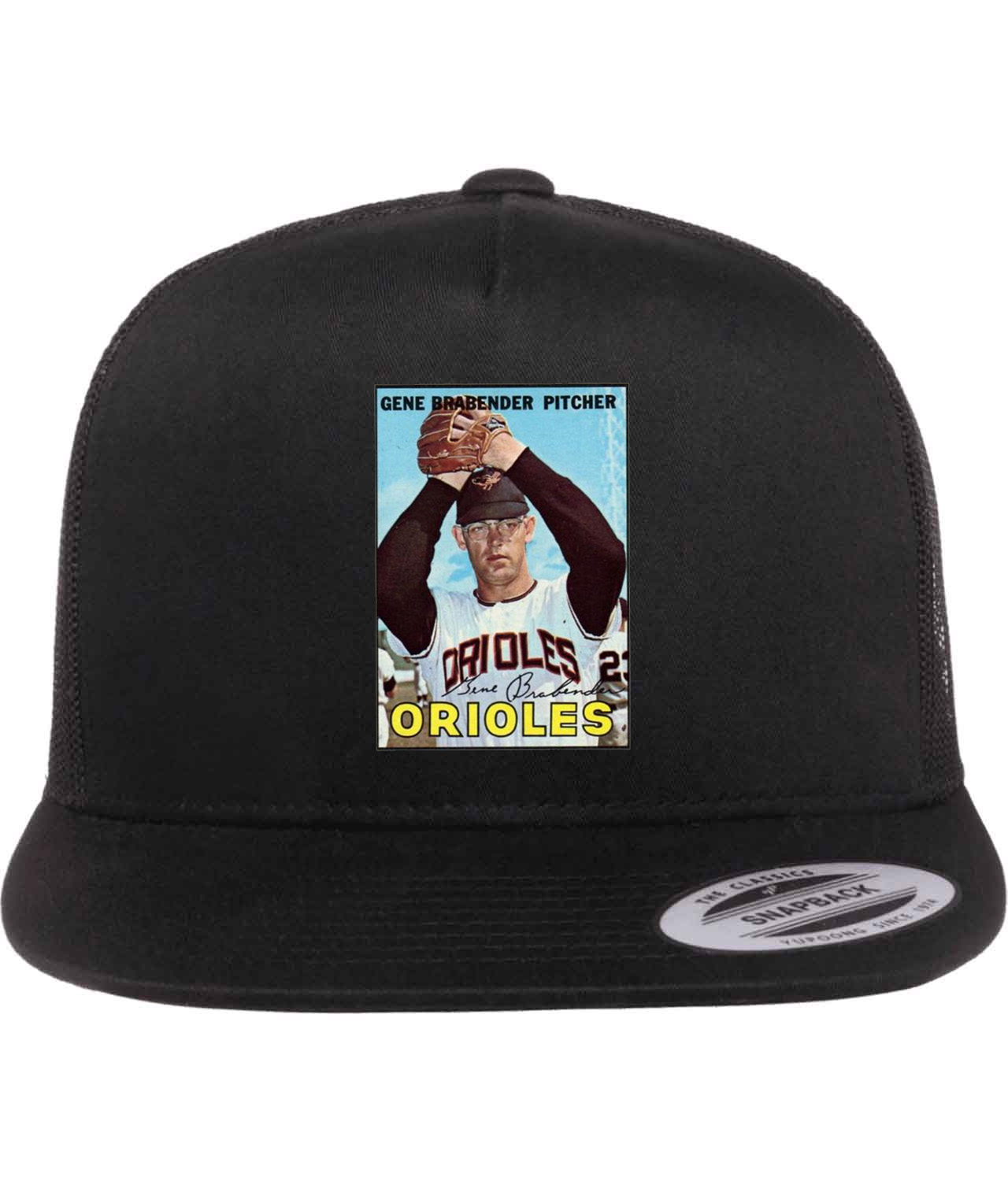 1965 Baltimore Orioles Gene Brabender Pitcher Photo Baseball Logo Symbol Emblem Customized Design on Classic Trucker Cap Hat