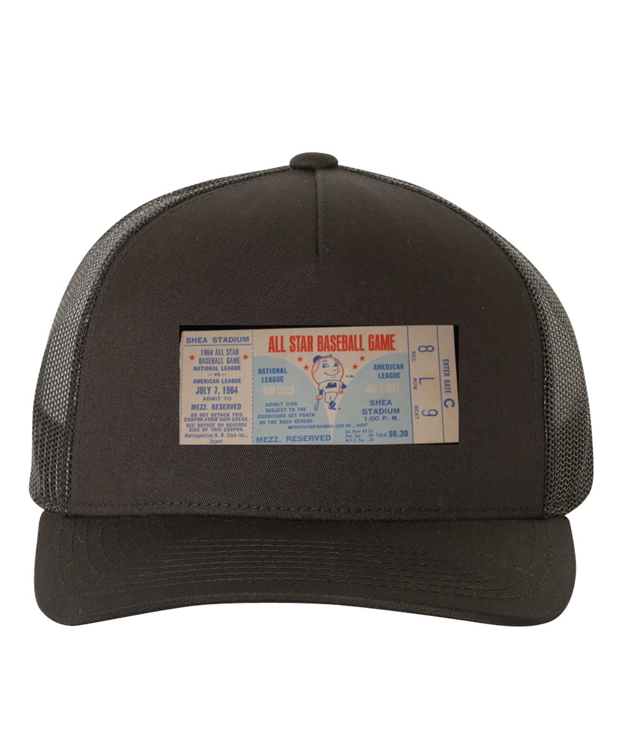 1964 MLB All-Star Game Ticket Stub Baseball Logo Symbol Emblem Customized Design on Retro Trucker Cap Hat