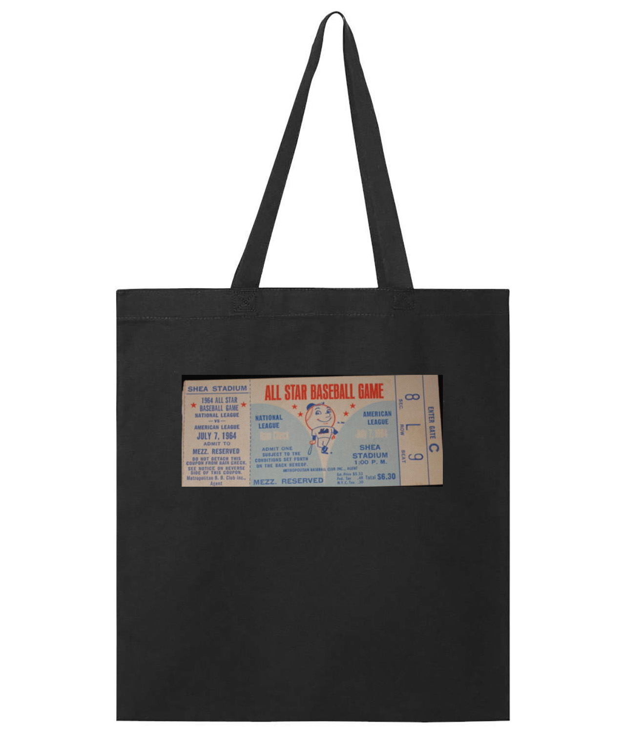 1964 MLB All-Star Game Ticket Stub Baseball Logo Symbol Emblem Customized Design on Promotional Tote Bag