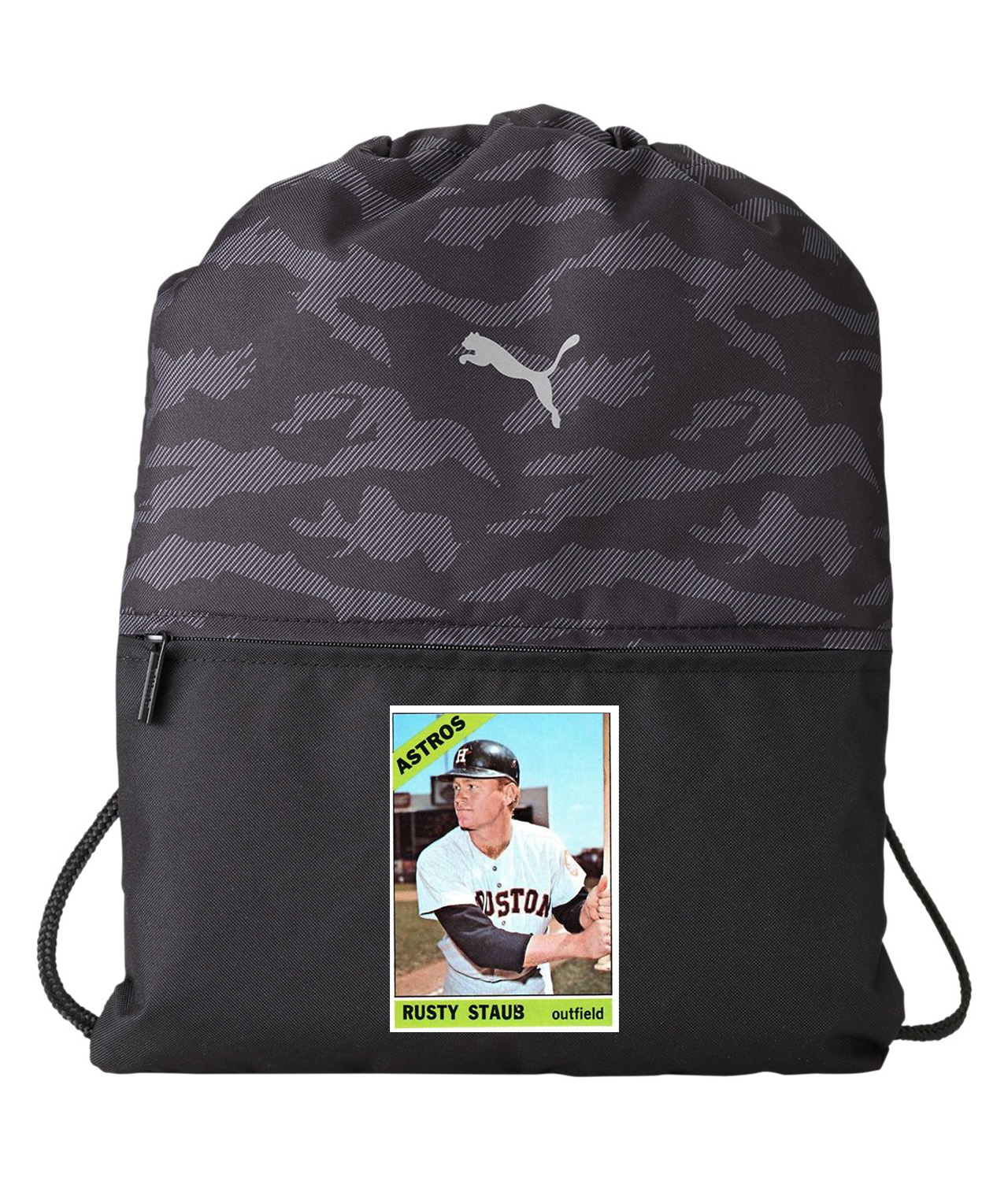 1965 Rusty Staub Houston Astros Photo Baseball Logo Symbol Emblem Customized Design on Camo Drawstring Backpack Bag