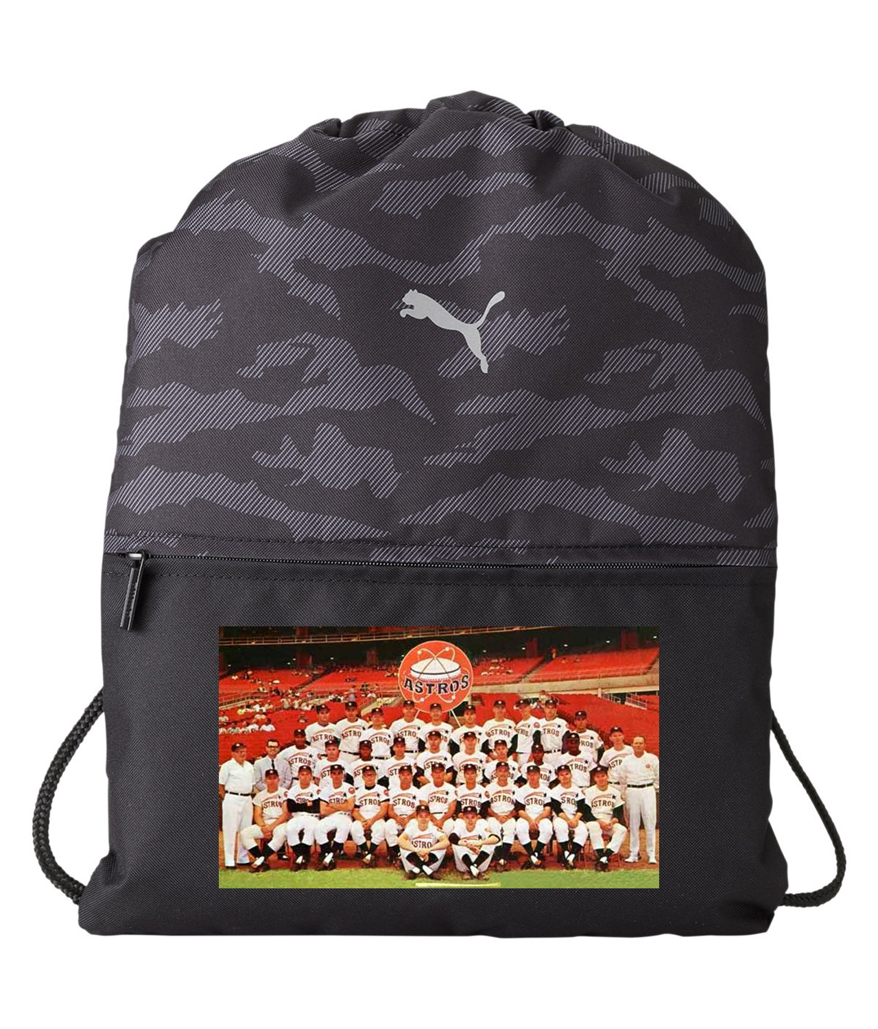 1965 Team Houston Astros Photo Baseball Logo Symbol Emblem Customized Design on Camo Drawstring Backpack Bag