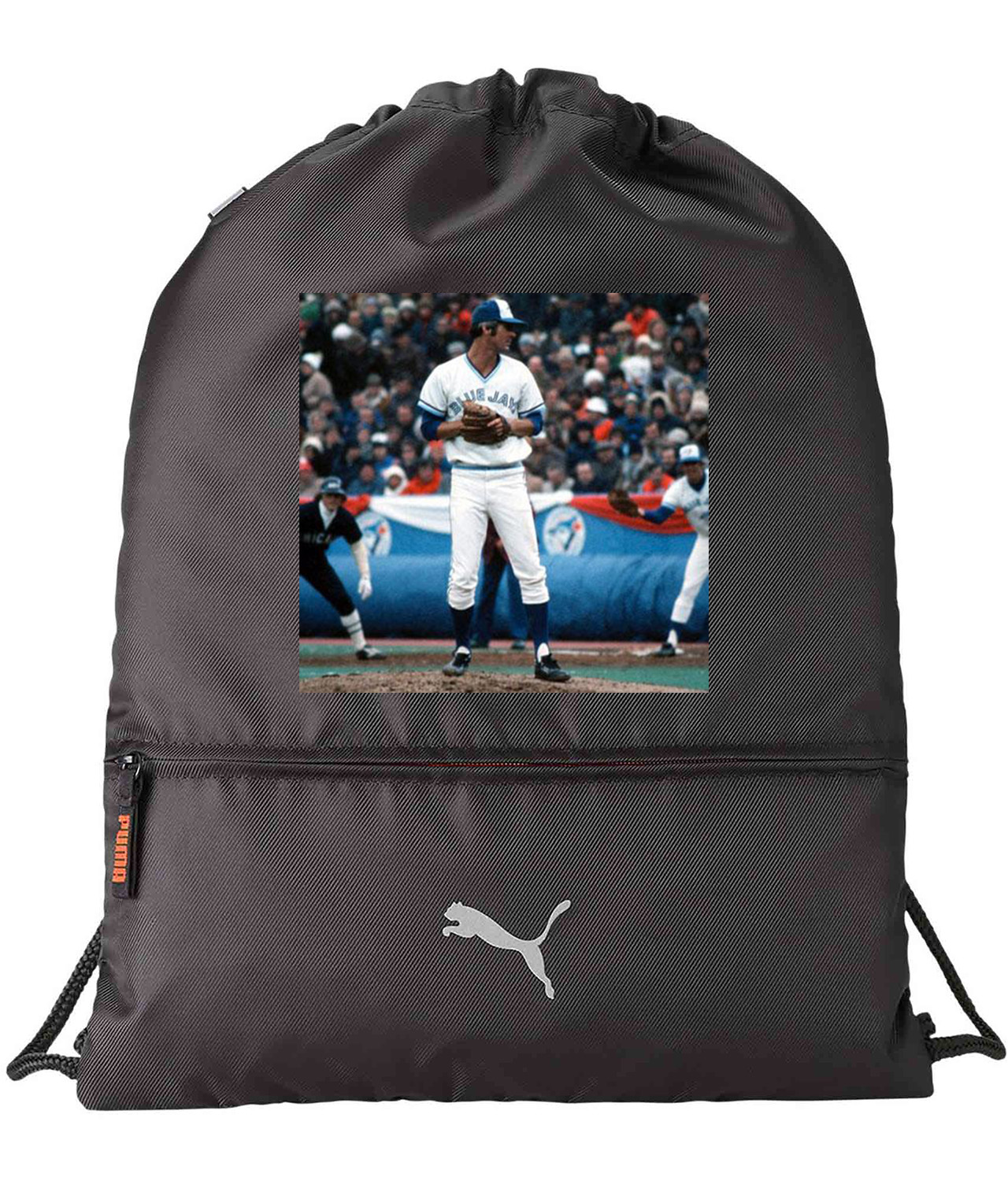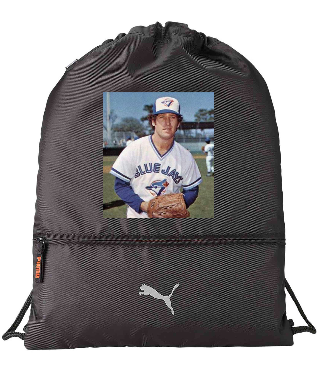 1977 Jesse Jefferson Toronto Blue Jays Photo Baseball Logo Symbol Emblem Customized Design on Lightweight Drawstring Backpack Bag