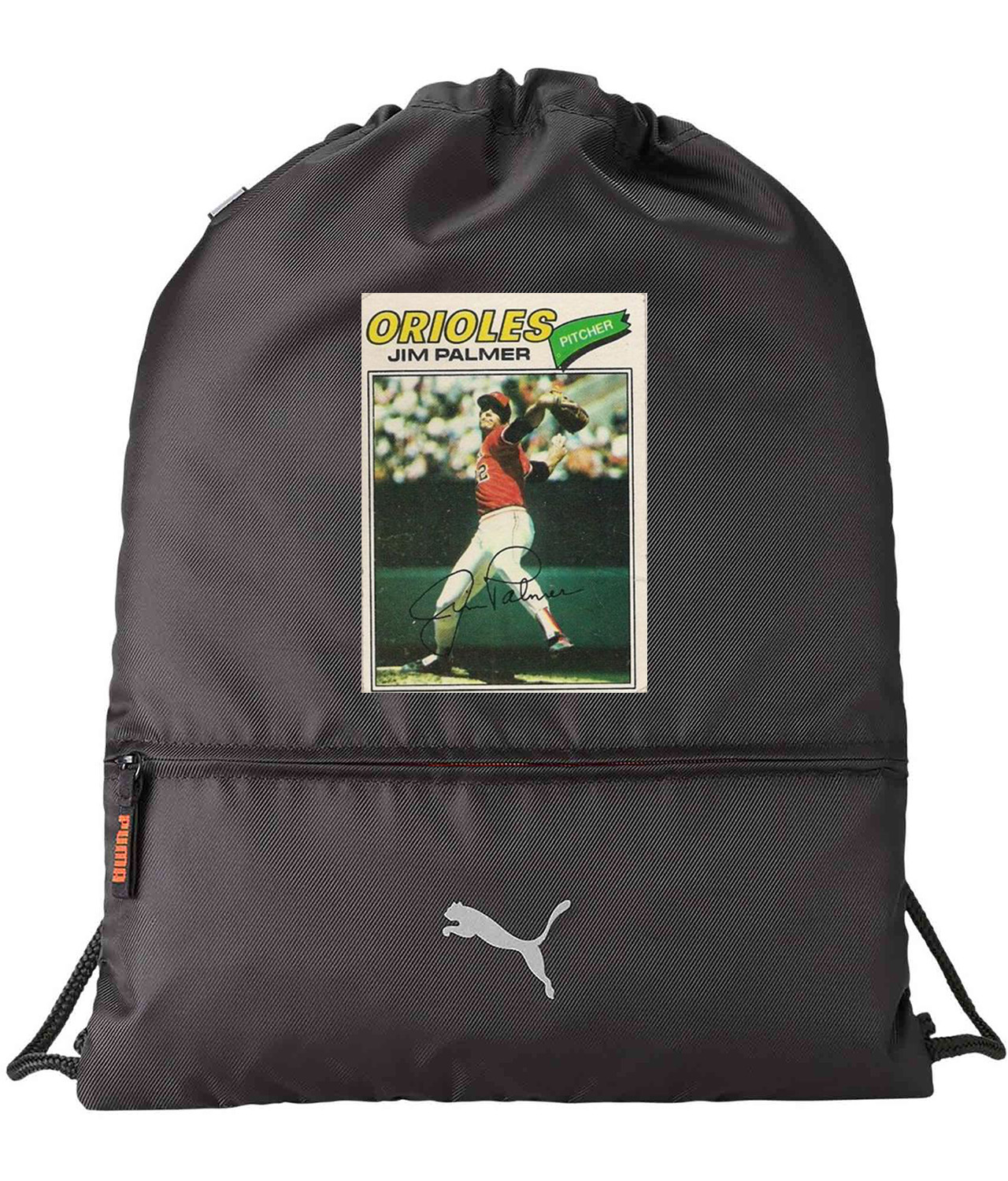 1977 Baltimore Orioles Jim Palmer Pitcher Photo Baseball Logo Symbol Emblem Customized Design on Lightweight Drawstring Backpack Bag