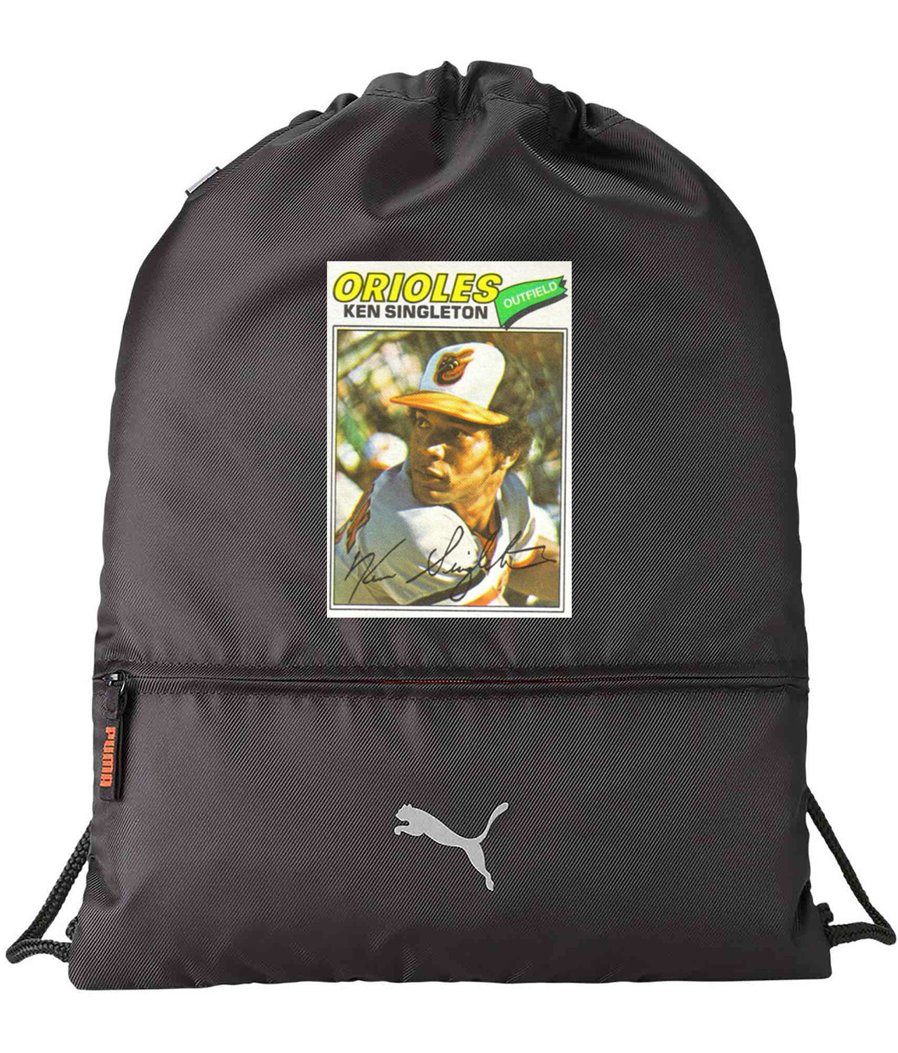 1977 Baltimore Orioles Ken Singleton Photo Baseball Logo Symbol Emblem Customized Design on Lightweight Drawstring Backpack Bag