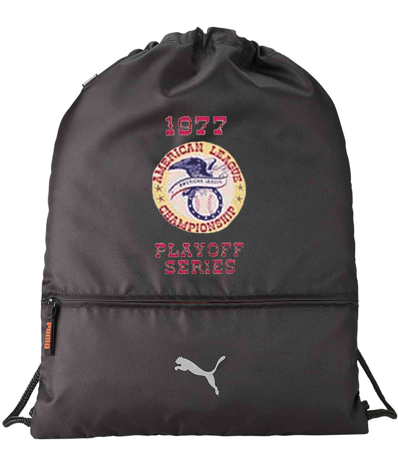 1977 American League Championship Playoff Series ALCS Baseball Logo Symbol Emblem Customized Design on Lightweight Drawstring Backpack Bag