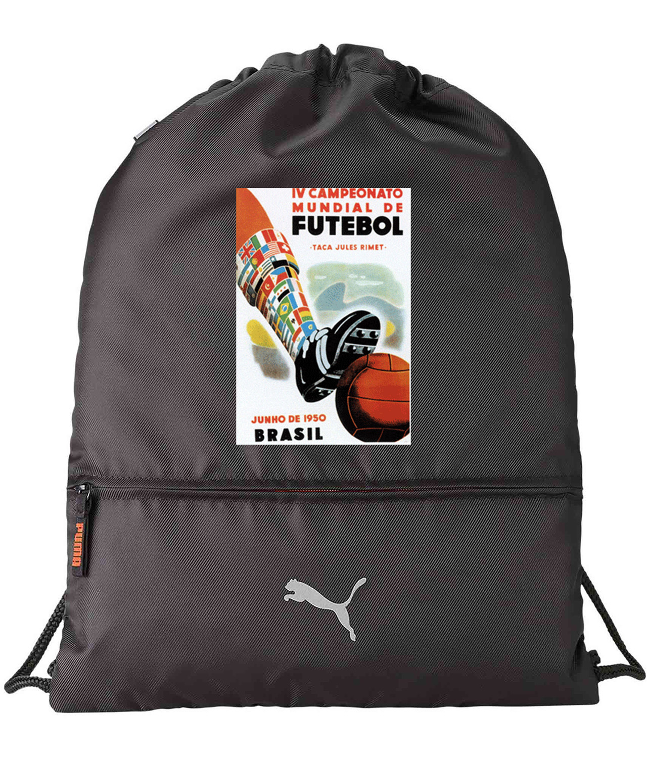 1950 FIFA World Cup Brazil Soccer Logo Symbol Emblem Customized Design on Lightweight Drawstring Backpack Bag