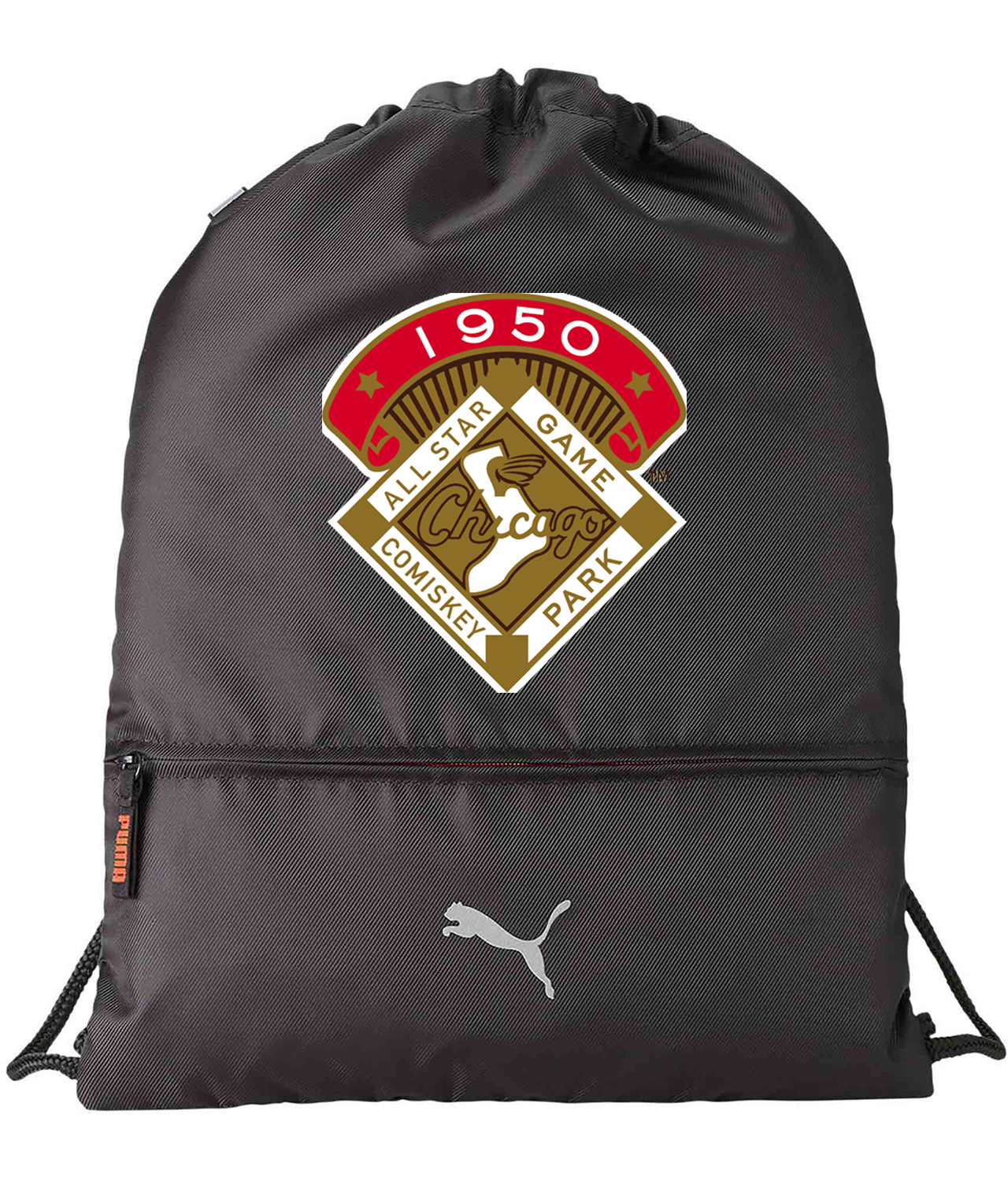 1950 MLB All-Star Game Comiskey Park Chicago Illinois Baseball Logo Symbol Emblem Customized Design on Lightweight Drawstring Backpack Bag