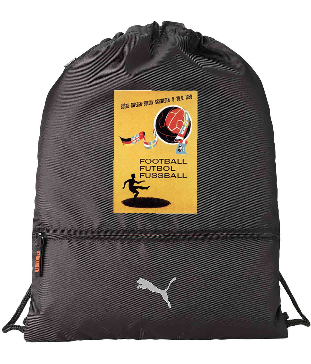 1958 FIFA World Cup Sweden Soccer Logo Symbol Emblem Customized Design on Lightweight Drawstring Backpack Bag