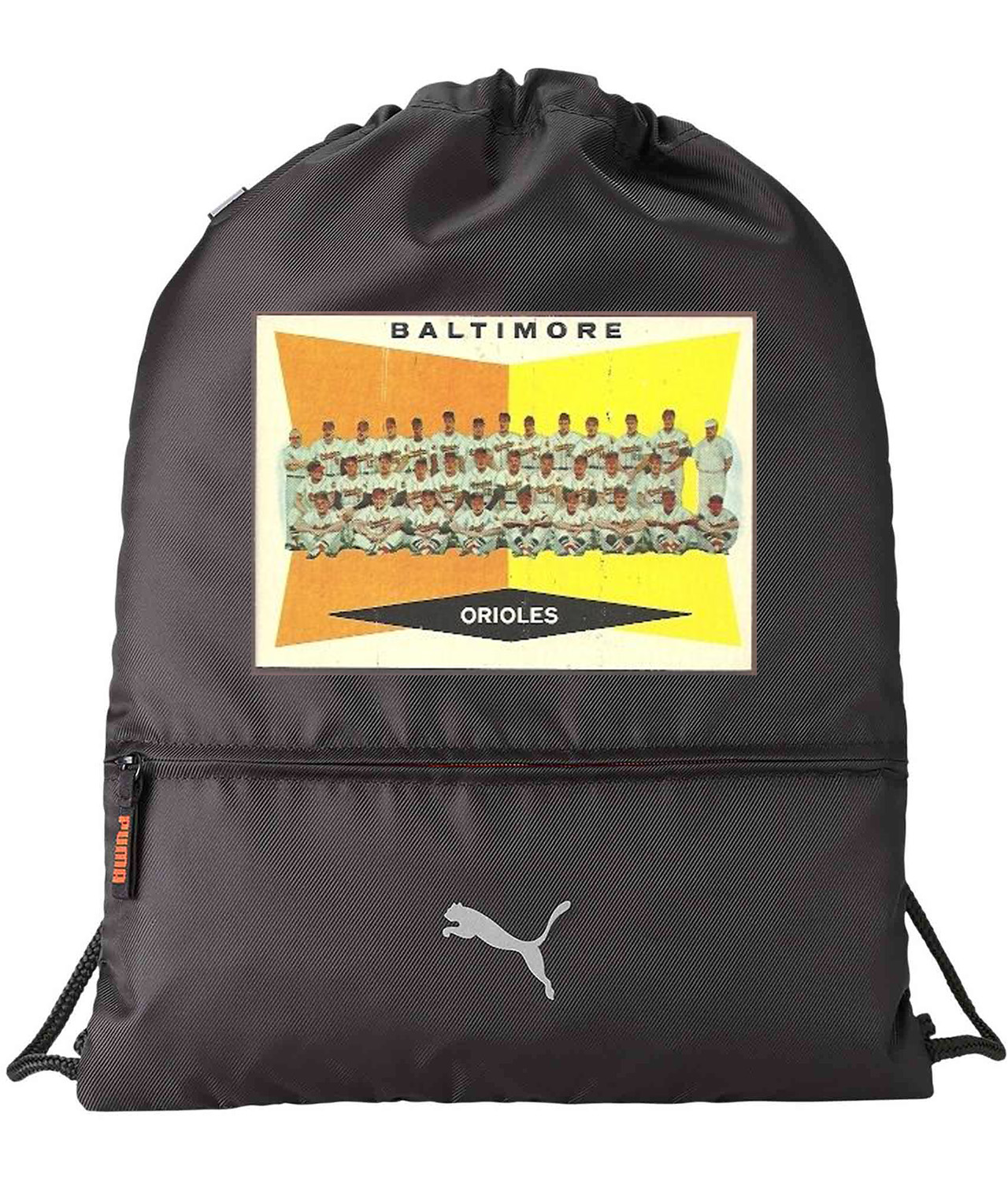 1959 Season Baltimore Orioles Photo Baseball Logo Symbol Emblem Customized Design on Lightweight Drawstring Backpack Bag
