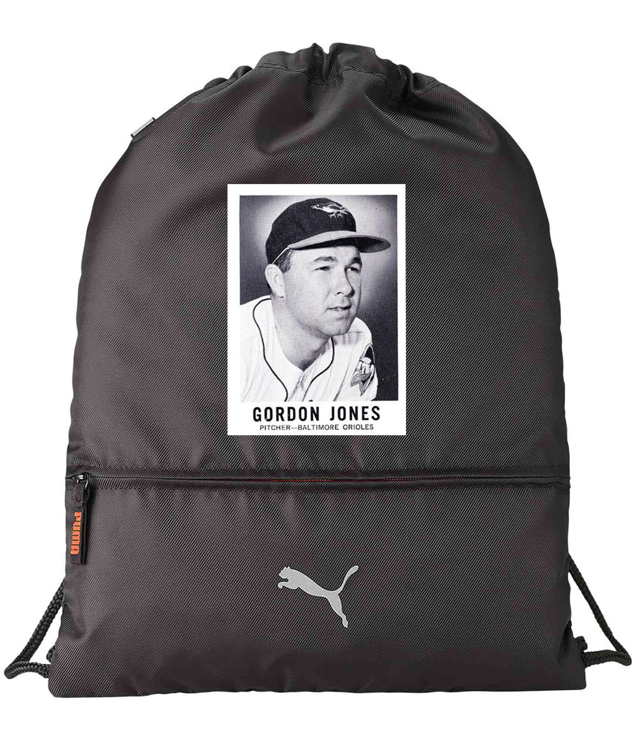 1960 Baltimore Orioles Gordon Jones Pitcher Photo Baseball Logo Symbol Emblem Customized Design on Lightweight Drawstring Backpack Bag