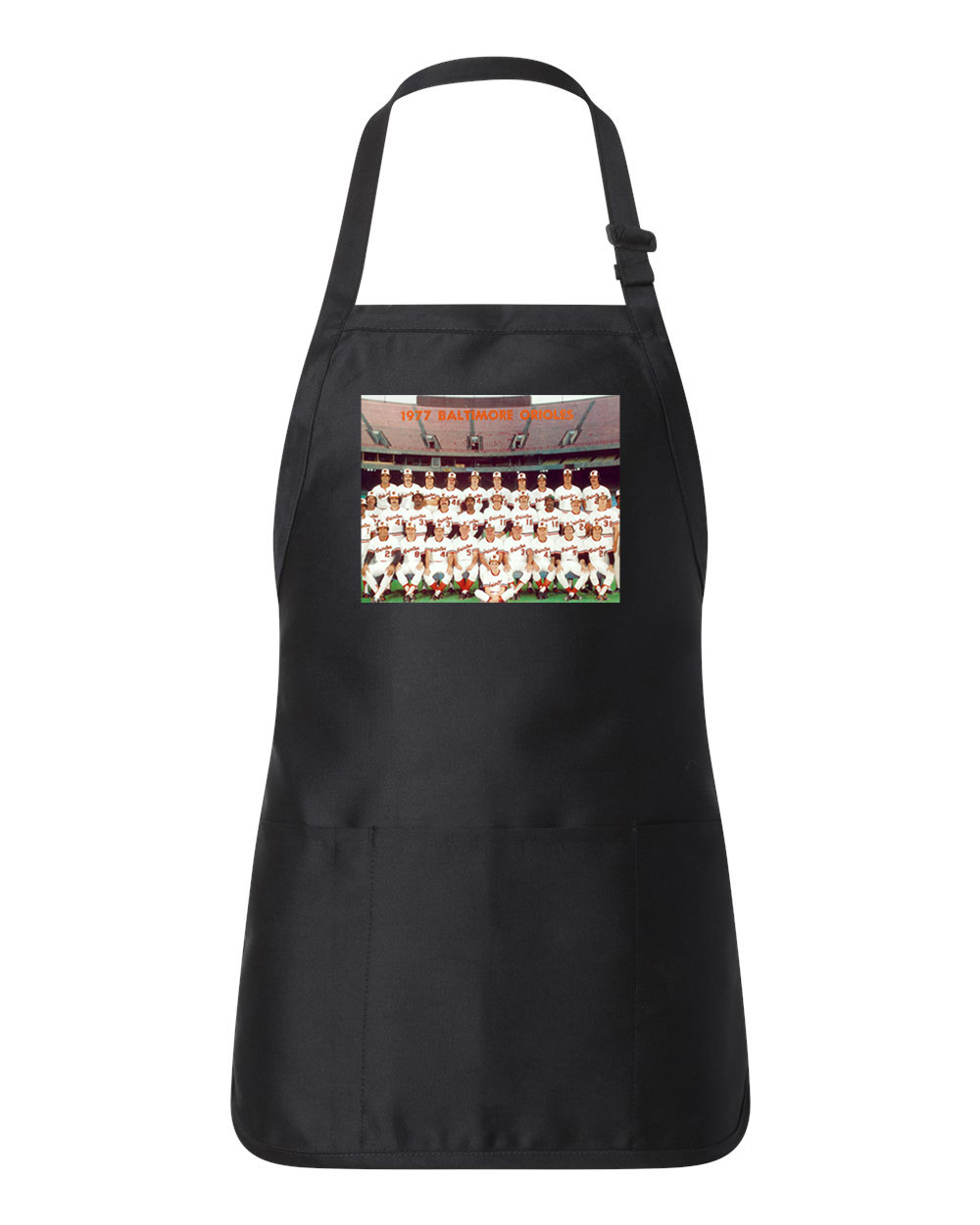 1977 Season Baltimore Orioles Photo Baseball Logo Customized Design on Full-Length Apron with Pouch Pocket