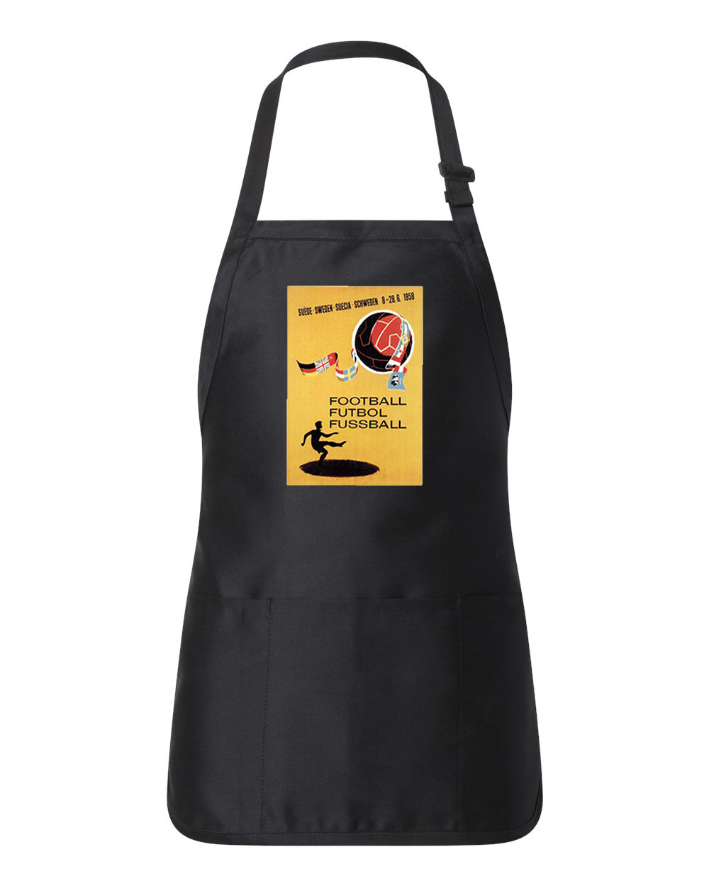 1958 FIFA World Cup Sweden Soccer Logo Symbol Emblem Customized Design on Full-Length Apron with Pouch Pocket