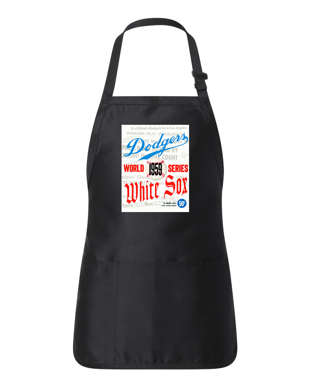 1959 World Series Program – Los Angeles Dodgers vs Chicago White Sox Baseball Logo Customized Design on Full-Length Apron with Pouch Pocket
