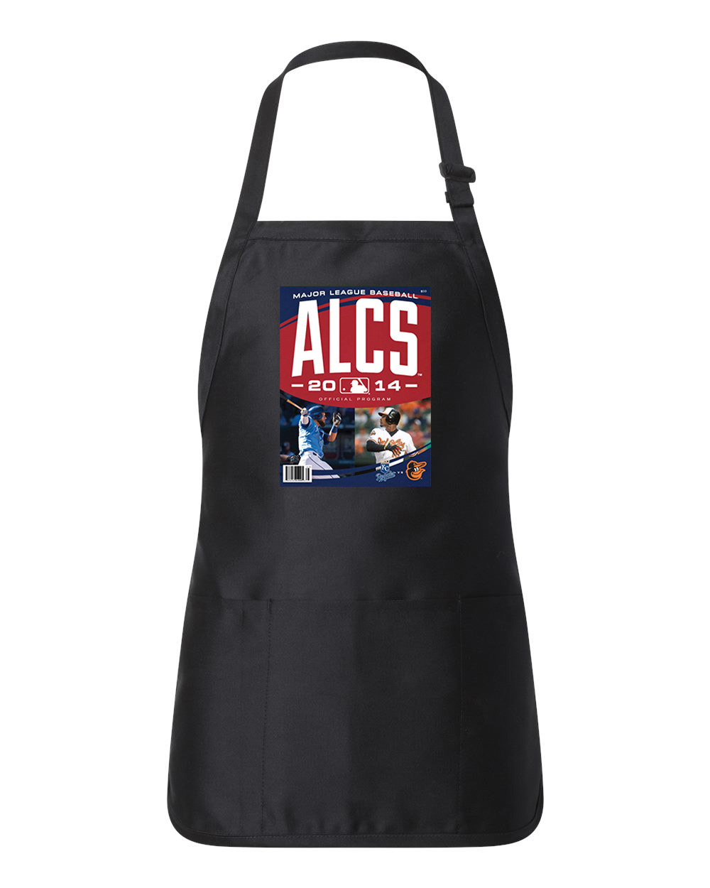 2014 ALCS Program Cover – Kansas City Royals Vs Baltimore Orioles Baseball Logo Customized Design on Full-Length Apron with Pouch Pocket