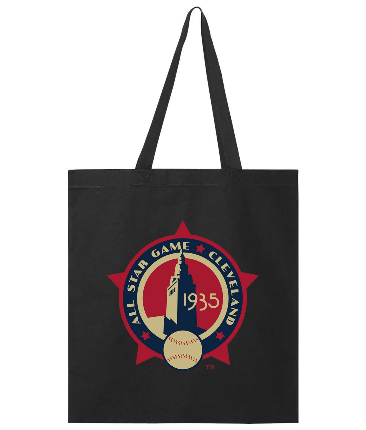 1935 MLB All-Star Game Municipal Stadium Cleveland Ohio Baseball Logo Symbol Emblem Customized Design on Promotional Tote Bag