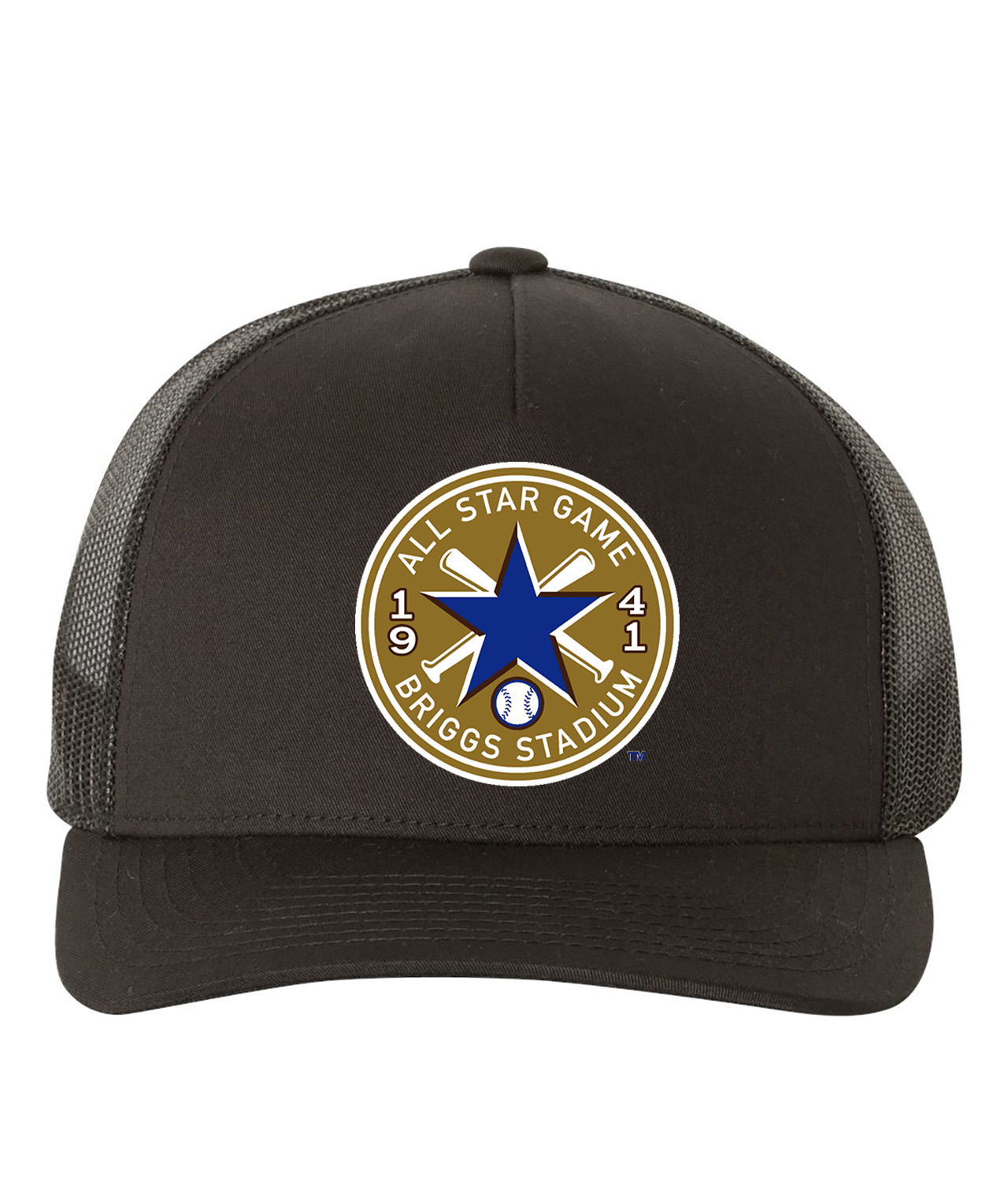 1941 MLB All-Star Game Briggs Stadium Detroit Michigan Baseball Logo Symbol Emblem Customized Design on Retro Trucker Cap Hat