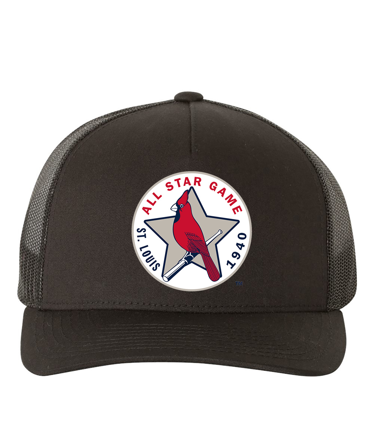 1940 MLB All-Star Game Sportsman’s Park St. Louis Missouri Baseball Logo Symbol Emblem Customized Design on Retro Trucker Cap Hat