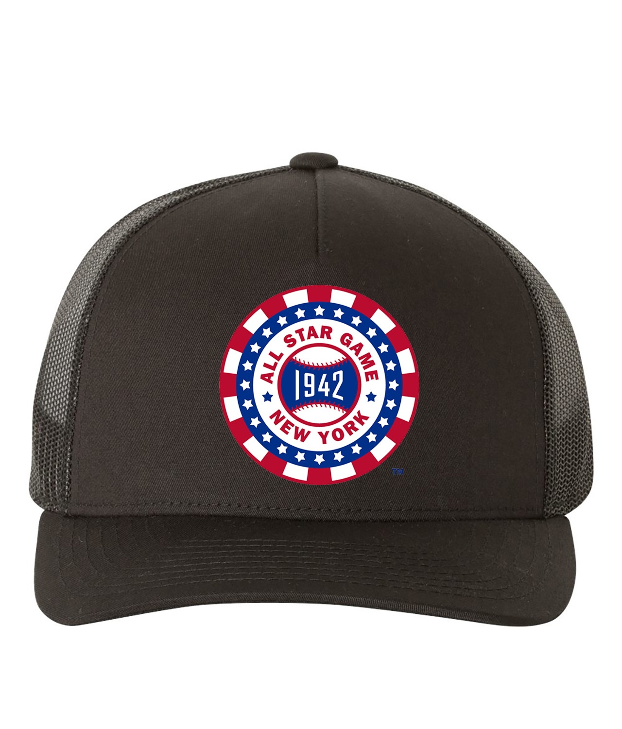 1942 MLB All-Star Game Polo Grounds New York Baseball Logo Symbol Emblem Customized Design on Retro Trucker Cap Hat