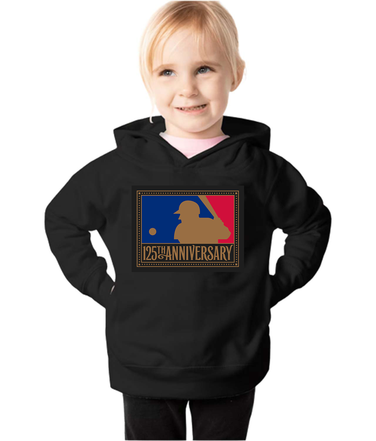 125th Anniversary Of Major League Baseball 1994 Logo Emblem Customized Design on Toddler Pullover Fleece Hoodie