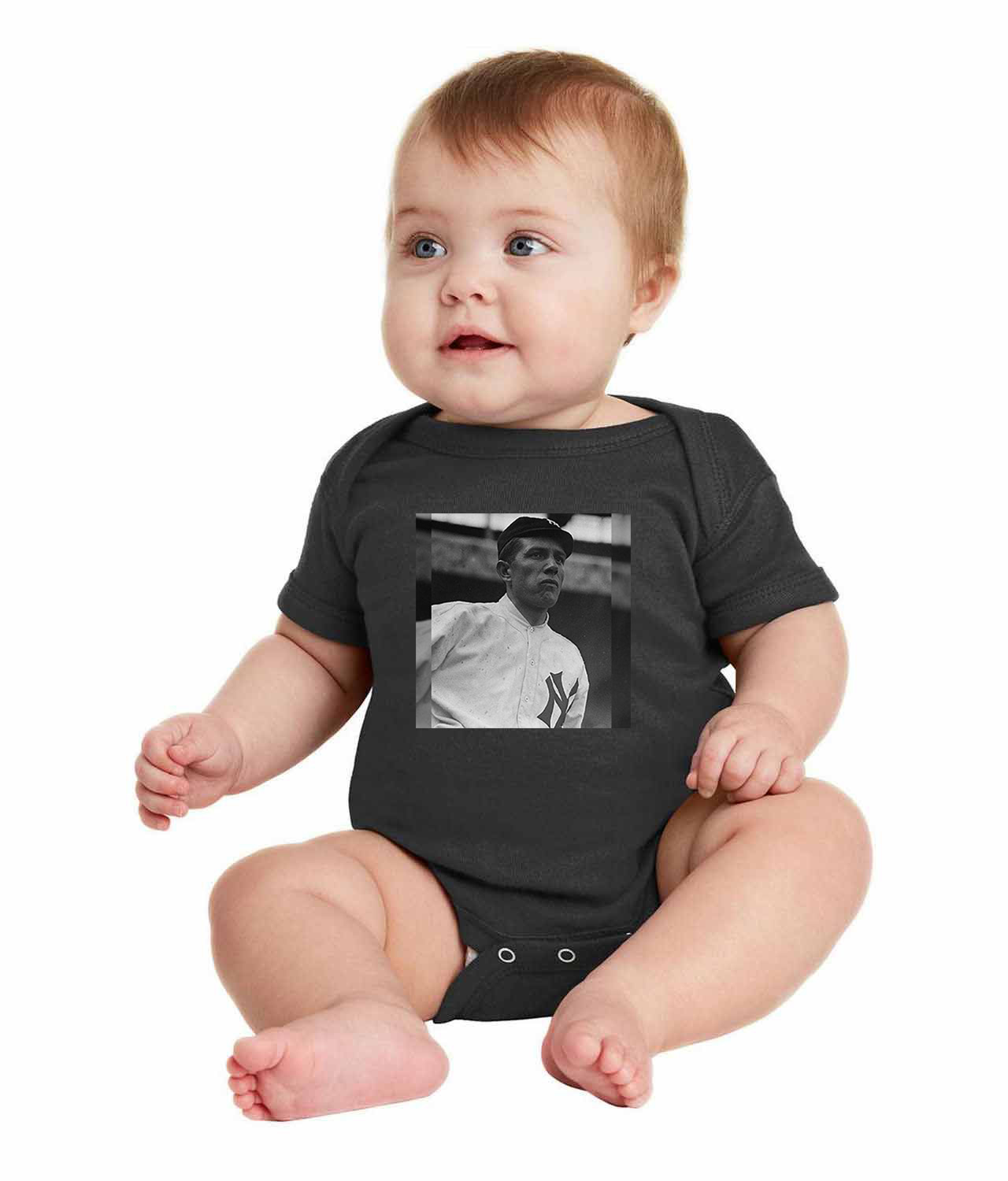 1913 Babe Barton New York Yankees Photo Baseball Logo Symbol Emblem Customized Design on Infant Baby Rib Bodysuit