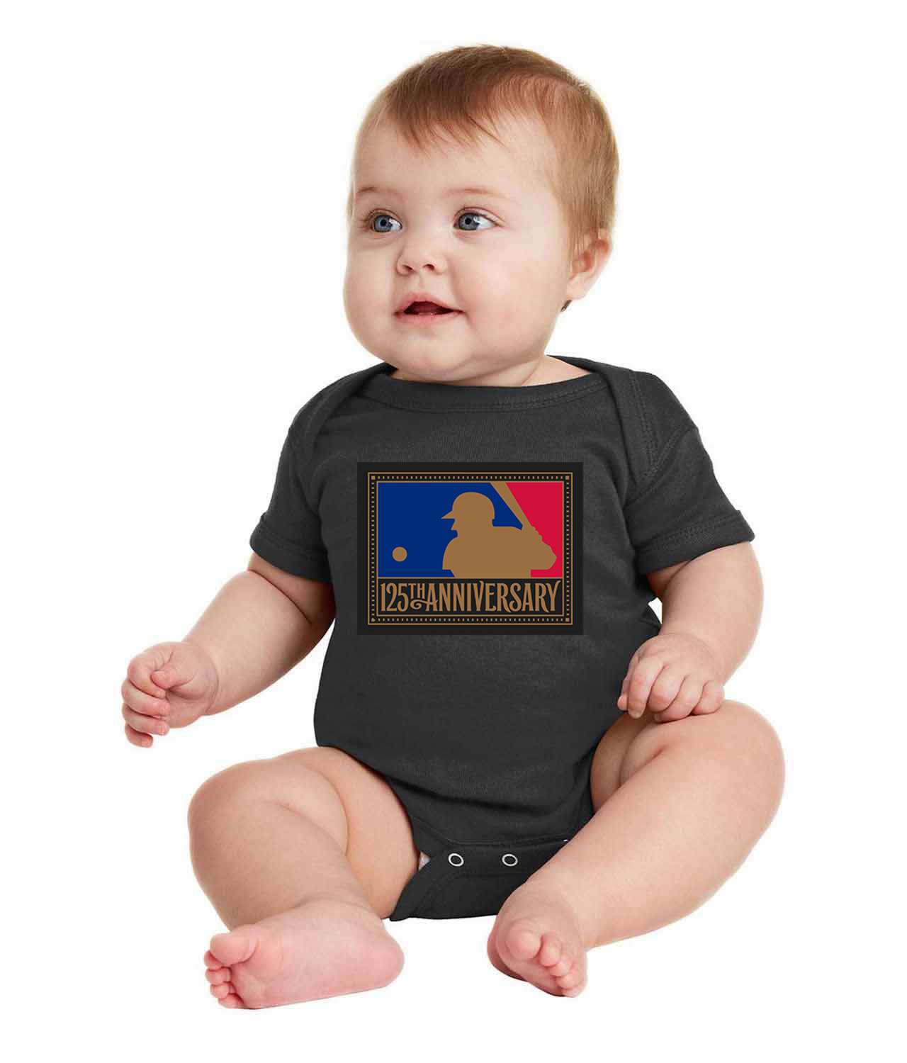 125th Anniversary Of Major League Baseball 1994 Logo Symbol Emblem Customized Design on Infant Baby Rib Bodysuit