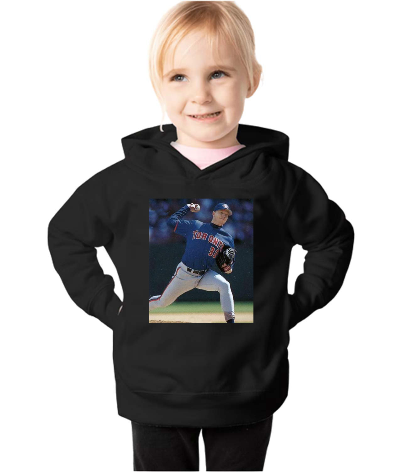 2000 Roy Halladay Toronto Blue Jays Photo Baseball Logo Symbol Emblem Customized Design on Toddler Pullover Fleece Hoodie