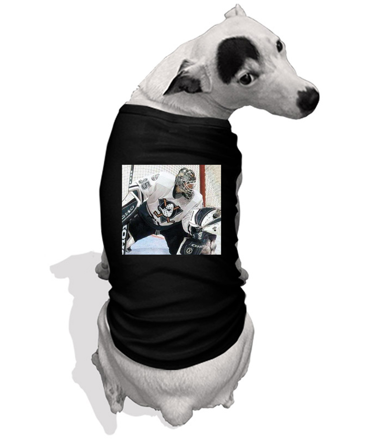 2001 Anaheim Ducks JS Giguere Photo Hockey Logo Symbol Emblem Customized Design on Doggie Puppy Dog Tank Tshirt