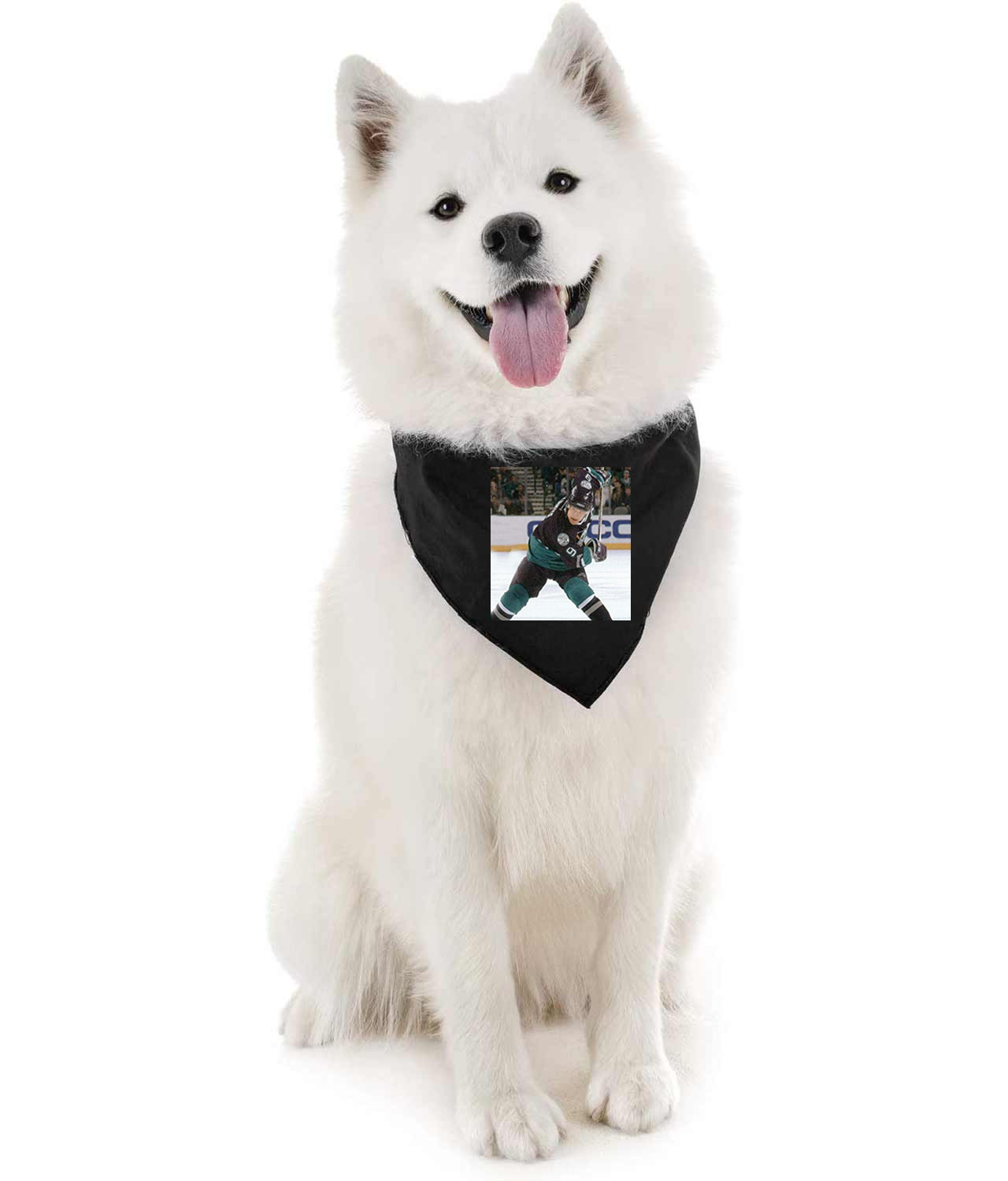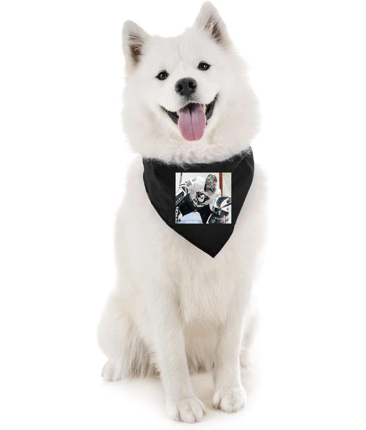 2001 Anaheim Ducks JS Giguere Photo Hockey Logo Symbol Emblem Customized Design on Doggie Puppy Dog Bandana