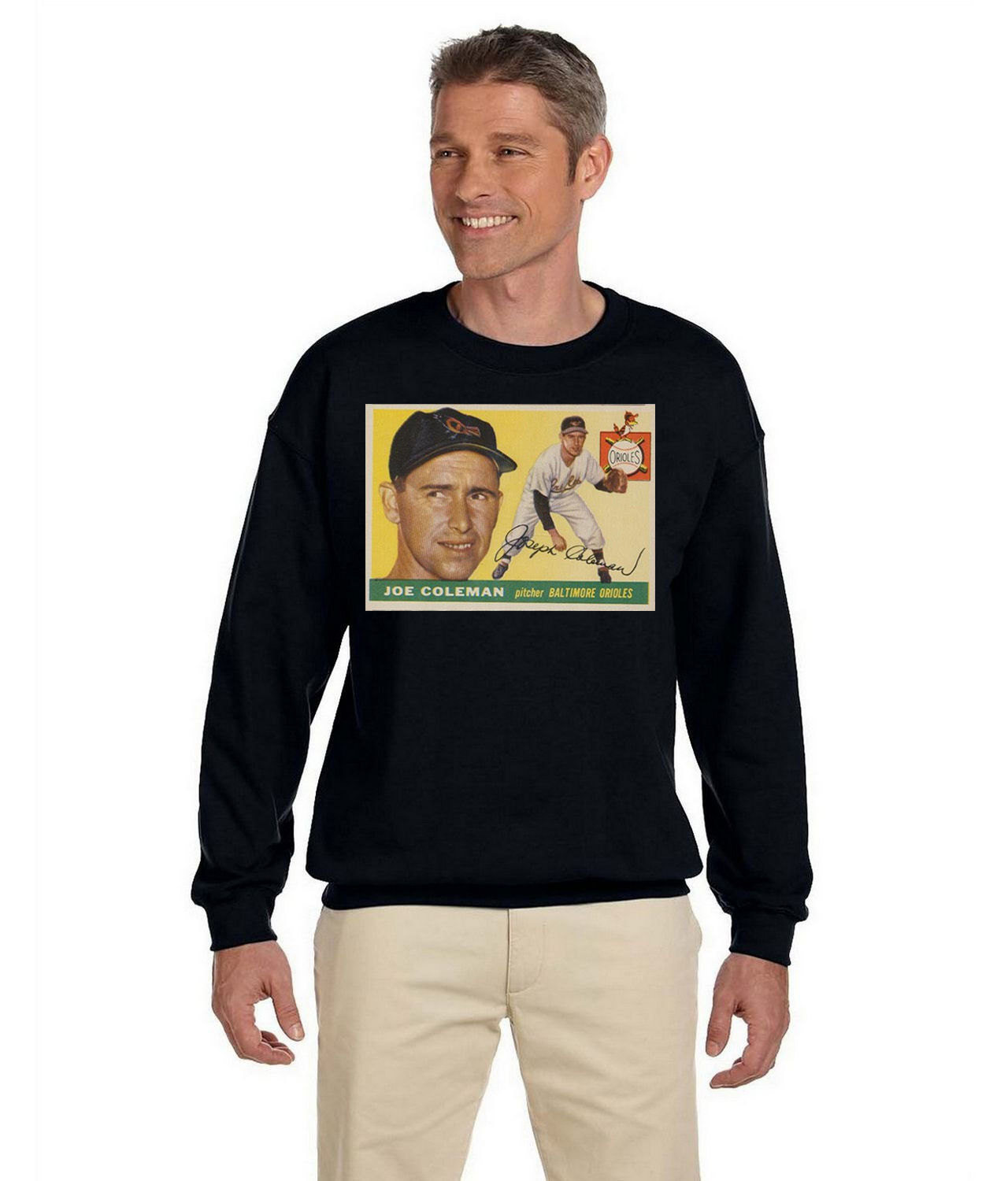 1955 Baltimore Orioles Photo Joe Coleman Pitcher Baseball Logo Symbol Emblem Customized Design on Unisex Crewneck Sweatshirt