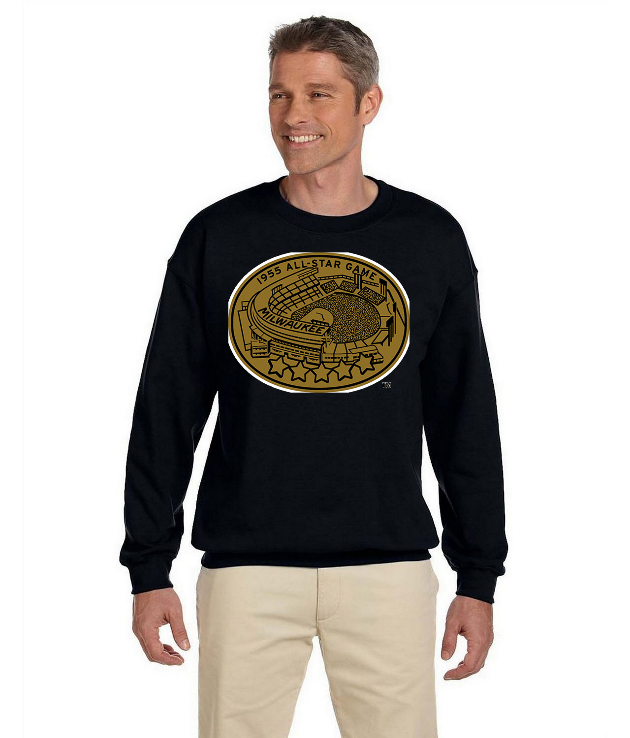 1955 MLB All-Star Game At County Stadium Milwaukee Wisconsin Baseball Logo Symbol Emblem Customized Design on Unisex Crewneck Sweatshirt