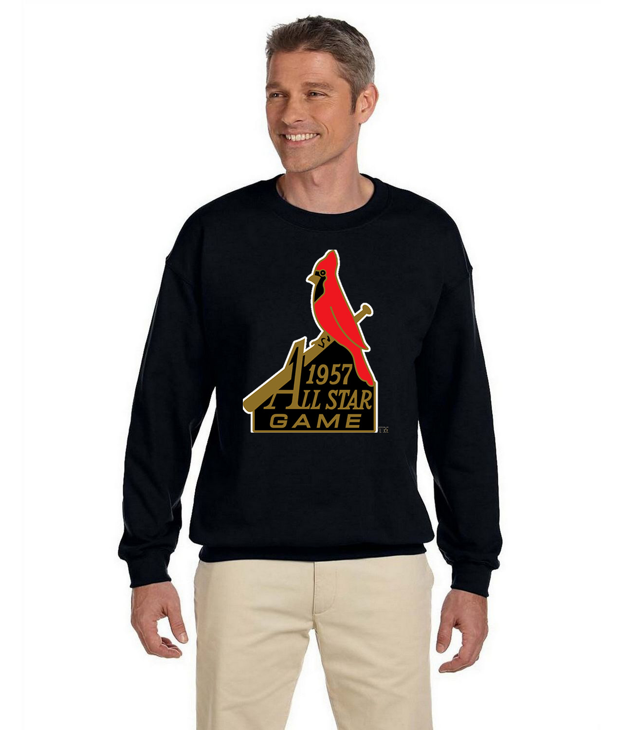 1957 MLB All-Star Game At Busch Stadium St. Louis Missouri Baseball Logo Symbol Emblem Customized Design on Unisex Crewneck Sweatshirt