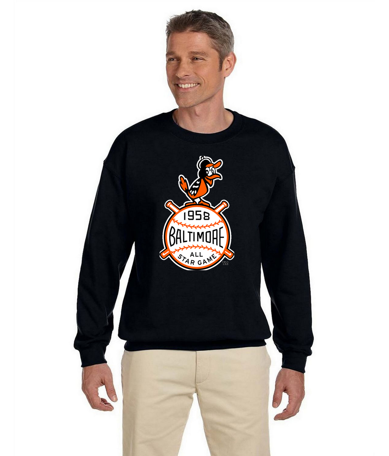 1960 Baltimore Orioles Gordon Photo Baseball Logo Symbol Emblem Customized Design on Unisex Crewneck Sweatshirt