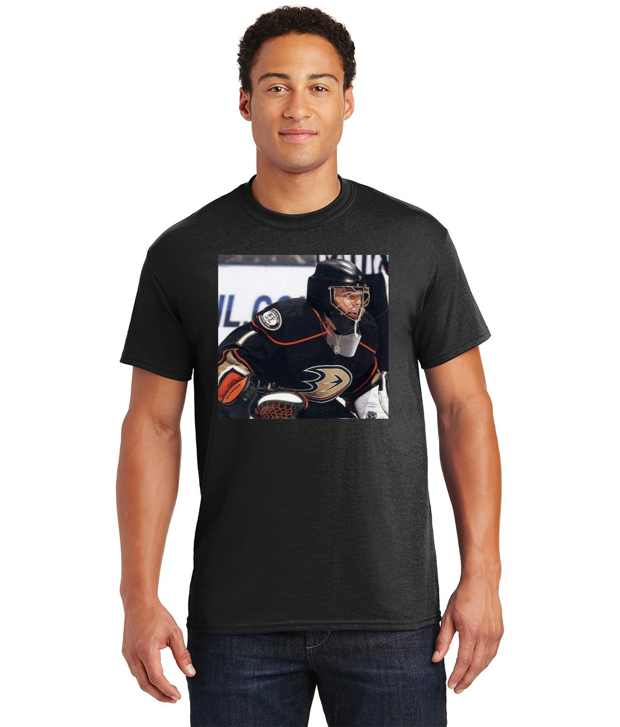 2010 Anaheim Ducks Jonas Hiller Photo Hockey Logo Customized Design on Unisex Tshirt Tee
