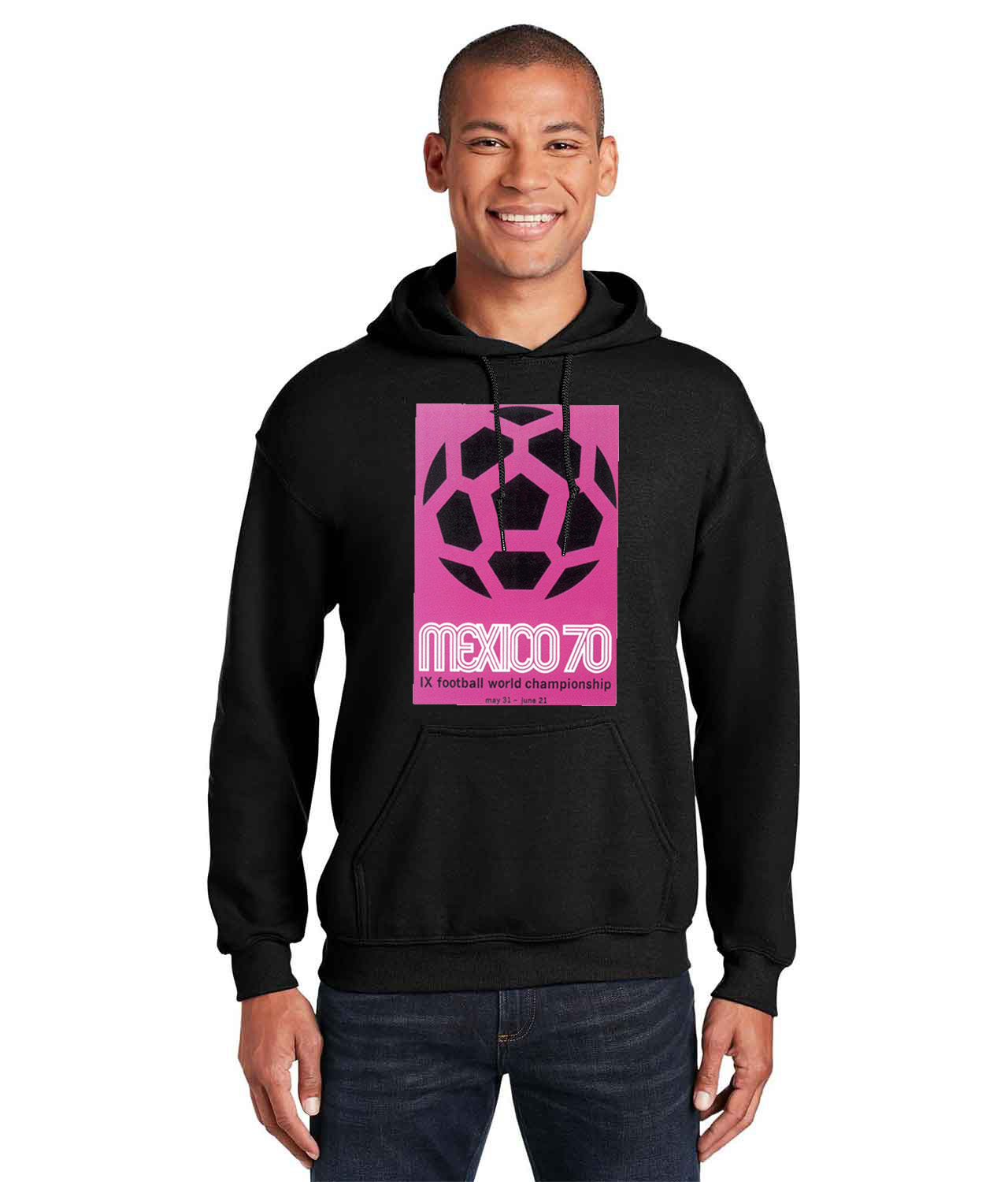 1970 FIFA World Cup Mexico Logo Symbol Emblem Customized Soccer Design on Unisex Hooded Sweatshirt