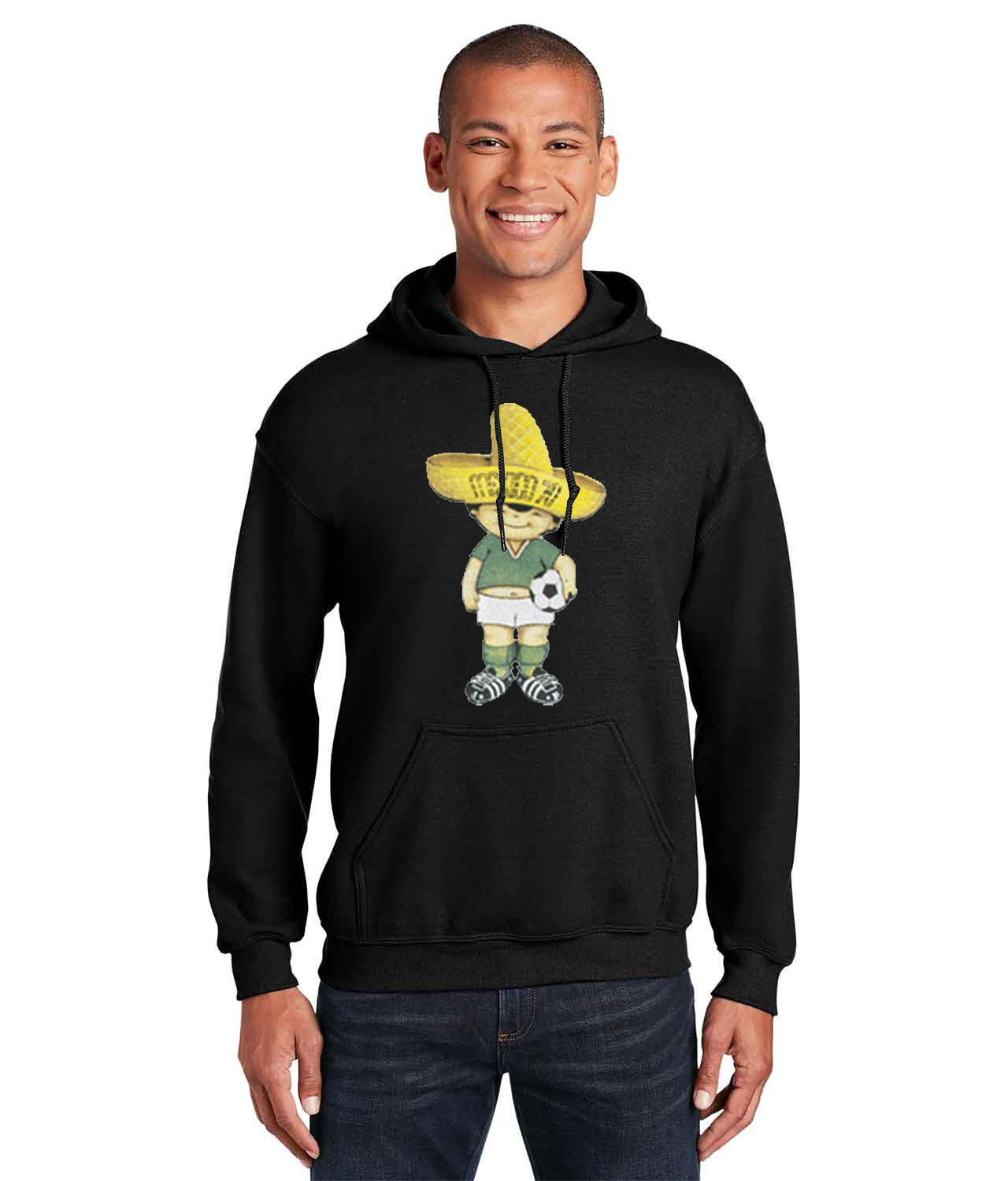 1970 FIFA World Cup Mexico Mascot Juanito Logo Symbol Emblem Customized Soccer Design on Unisex Hooded Sweatshirt