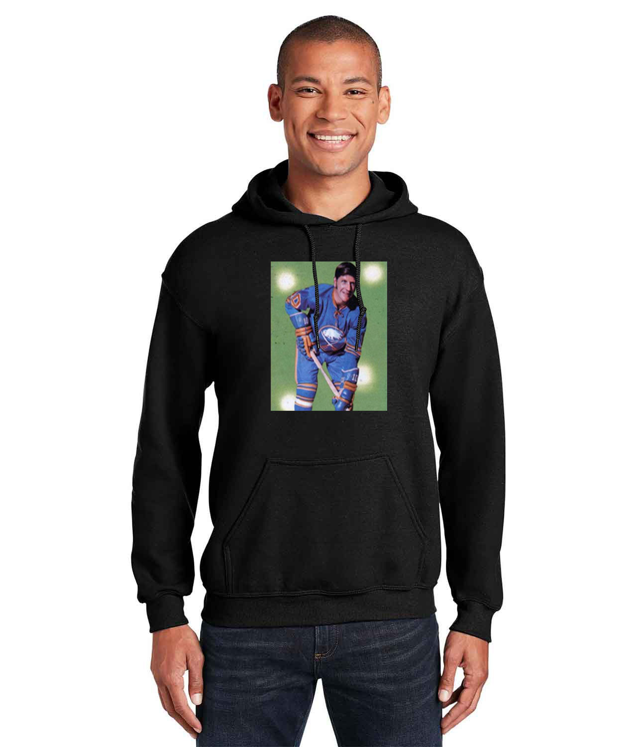 1970 Buffalo Sabres Phil Goyette Photo Hockey Logo Customized Design on Unisex Hooded Sweatshirt