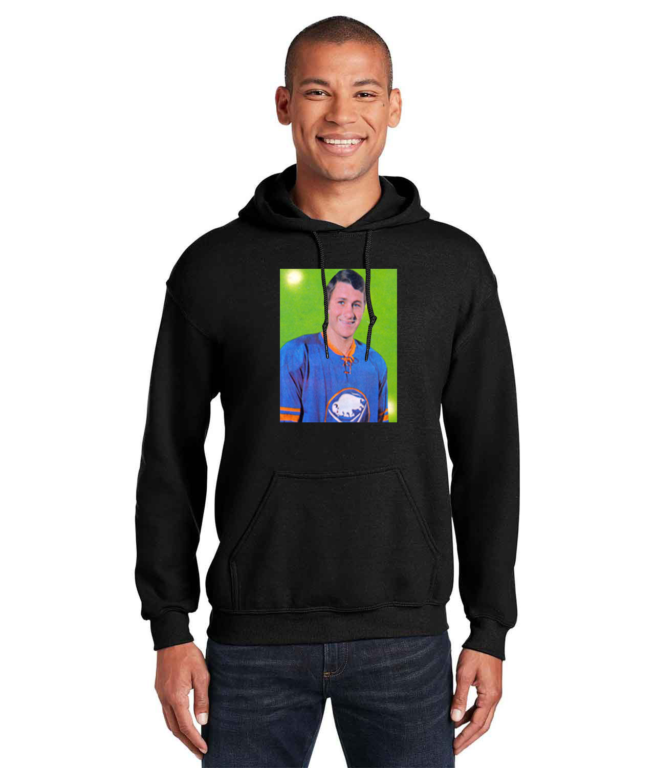 1970-71 Buffalo Sabres Gilbert Perreault Photo Hockey Logo Customized Design on Unisex Hooded Sweatshirt