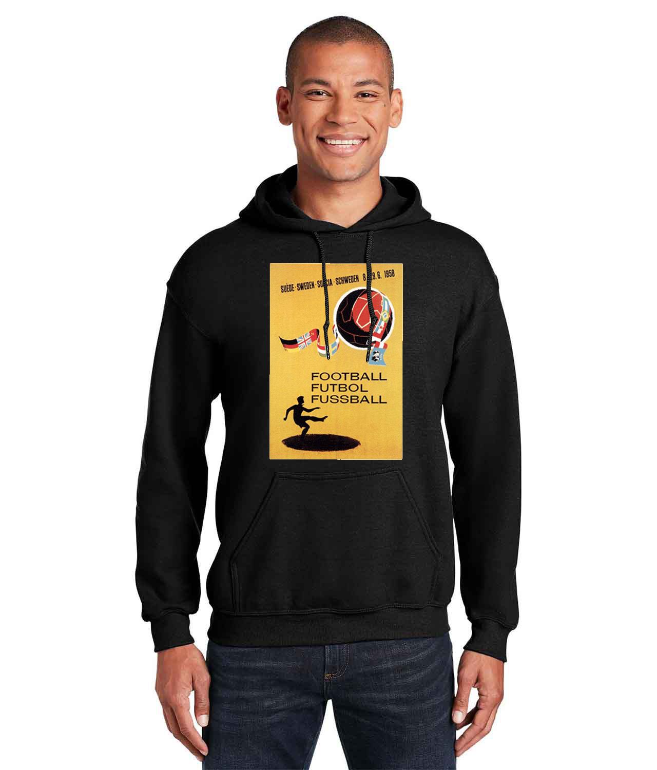 1958 FIFA World Cup Sweden Logo Symbol Emblem Customized Soccer Design on Unisex Hooded Sweatshirt
