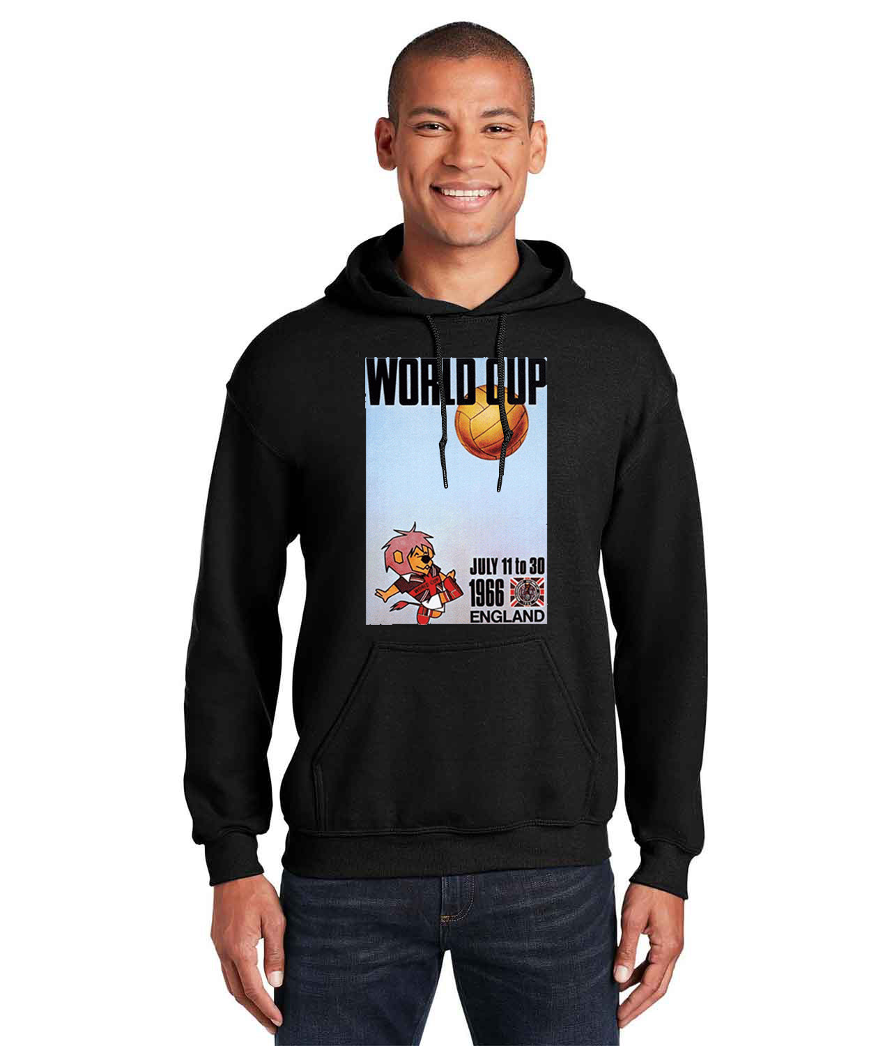 1966 FIFA World Cup England Willie Logo Symbol Emblem Customized Soccer Design on Unisex Hooded Sweatshirt