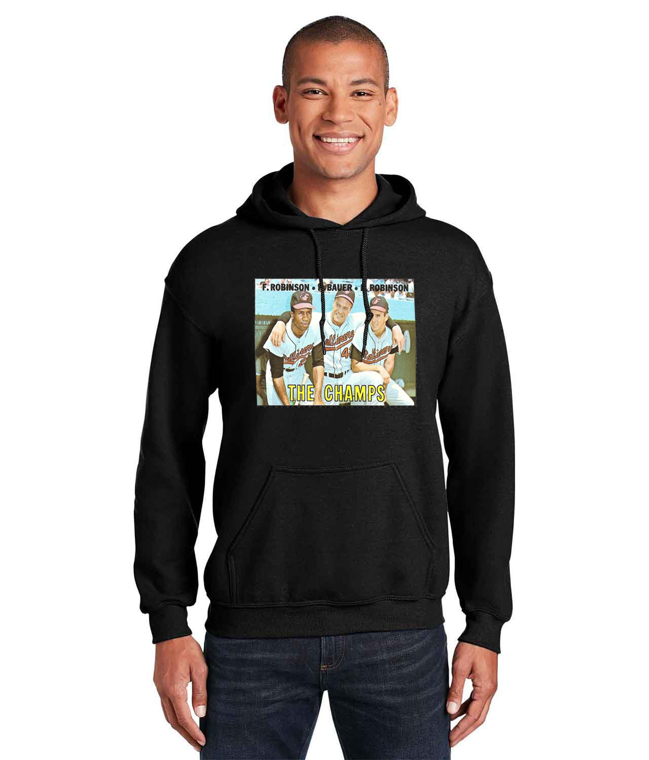 1967 the Champs F. Robinson, H. Bauer, B. Robinson Baltimore Orioles Photo Baseball Logo Customized Design on Unisex Hooded Sweatshirt