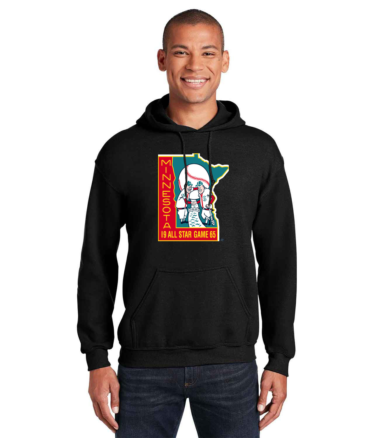 1965 MLB All-Star Game At Metropolitan Stadium Bloomington Minnesota Baseball Logo Customized Design on Unisex Hooded Sweatshirt