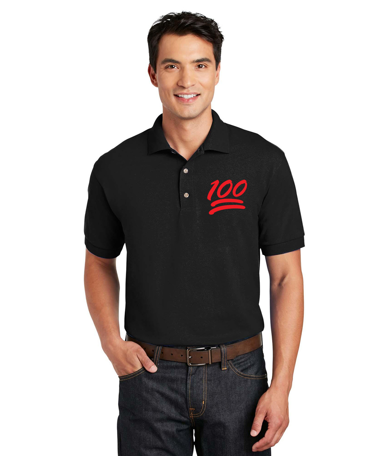 100 Emoji Logo Symbol Emblem Customized Design on Unisex Sport Knit Jersey Polo T-Shirt