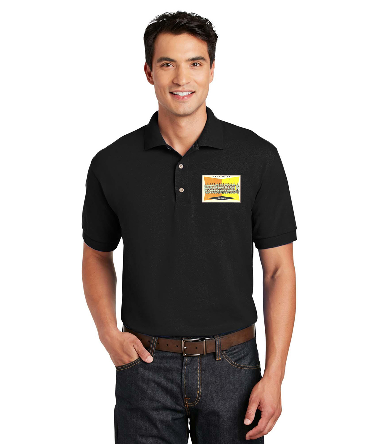 1959 Season Baltimore Orioles Photo Baseball Logo Symbol Emblem Customized Design on Unisex Sport Knit Jersey Polo T-Shirt