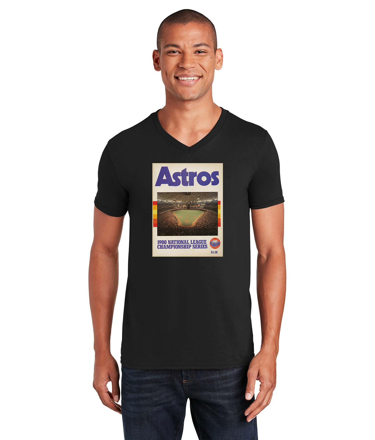 1980 NLCS Program – Houston Astros vs Philadelphia Phillies Baseball Logo Symbol Emblem Customized Design on Unisex V-Neck T-Shirt Tee