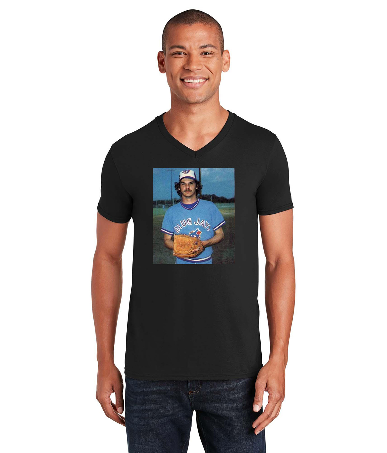 1980 Jim Clancy Toronto Blue Jays Photo Baseball Logo Symbol Emblem Customized Design on Unisex V-Neck T-Shirt Tee