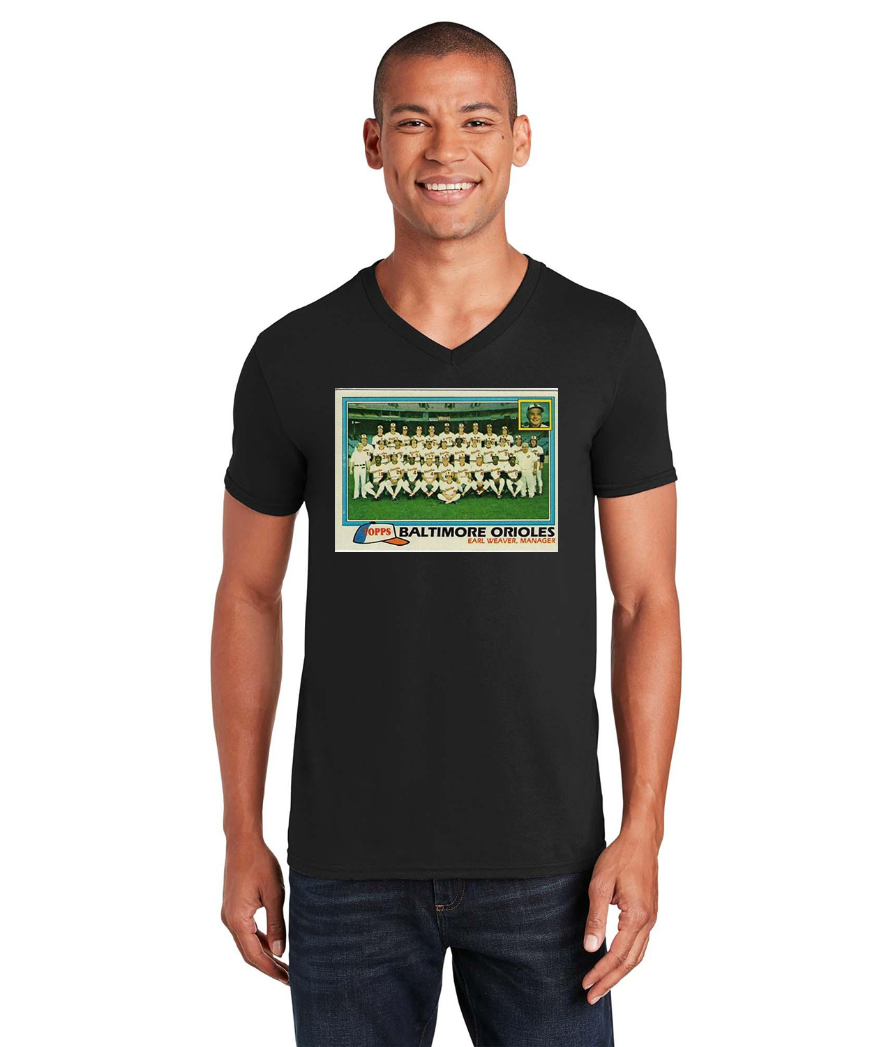 1980 Baltimore Orioles Earl Weaver Photo Baseball Logo Symbol Emblem Customized Design on Unisex V-Neck T-Shirt Tee