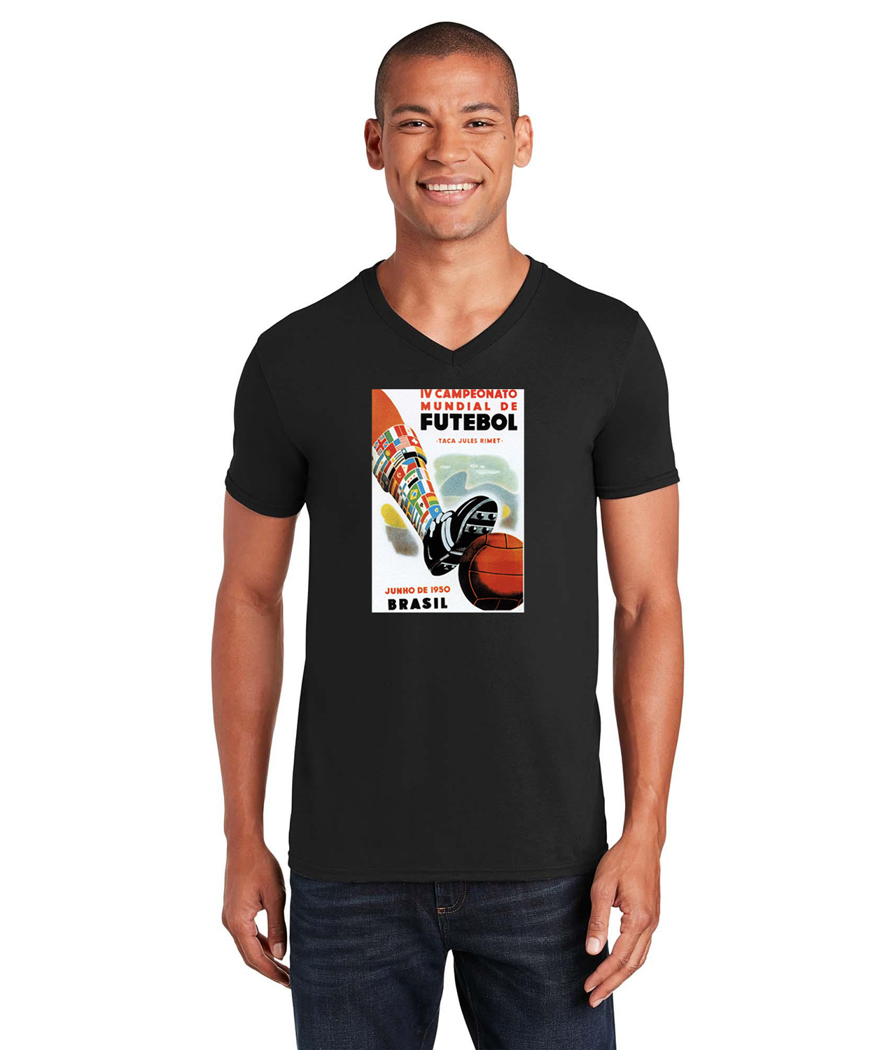 1950 FIFA World Cup Brazil Soccer Logo Symbol Emblem Customized Design on Unisex V-Neck T-Shirt Tee